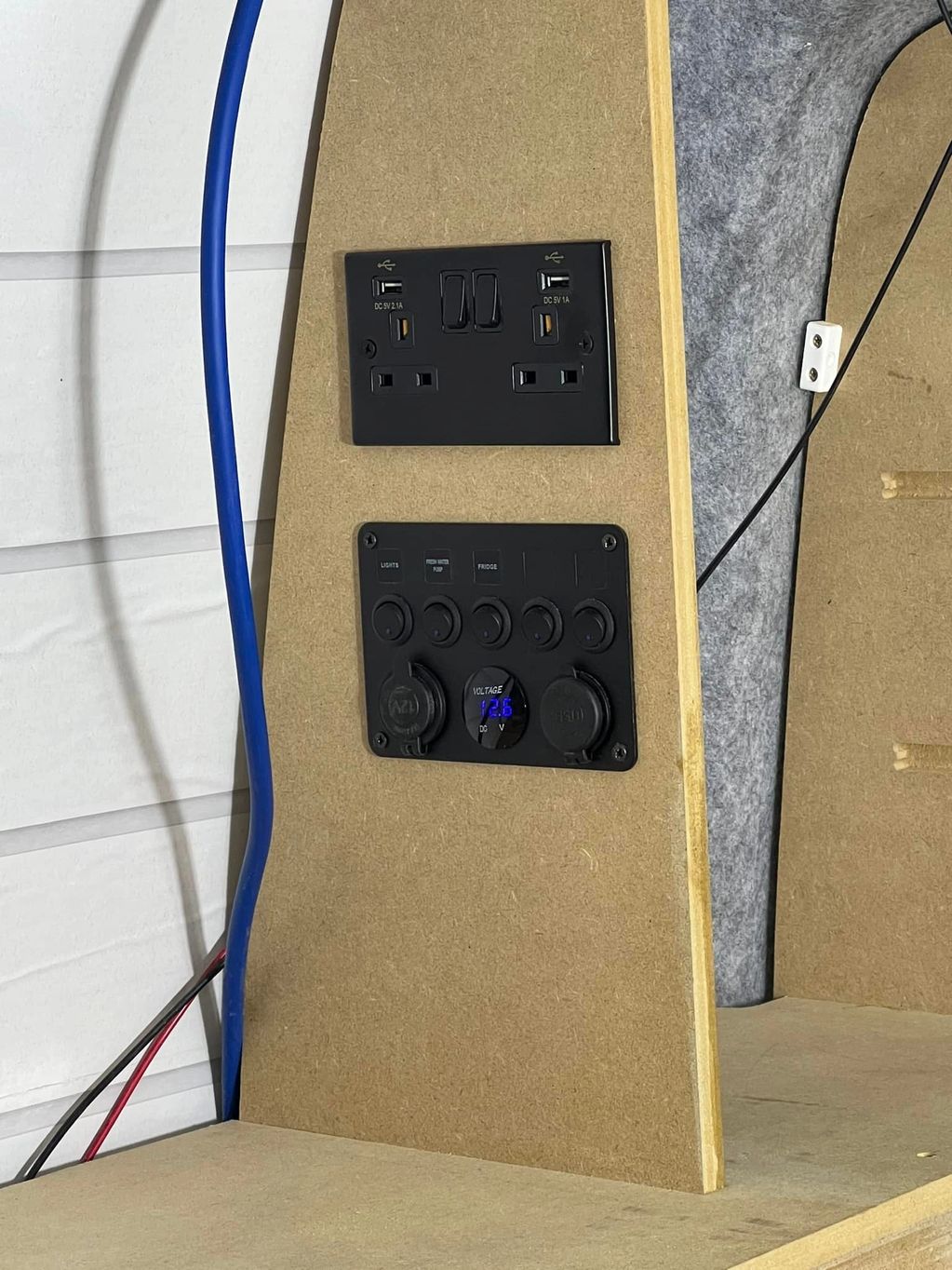 Recently fitted to a VW camper project for a client leisure battery, cables, smart charger, split charger, switch board, 240v hookup, USB socket and fuseboard